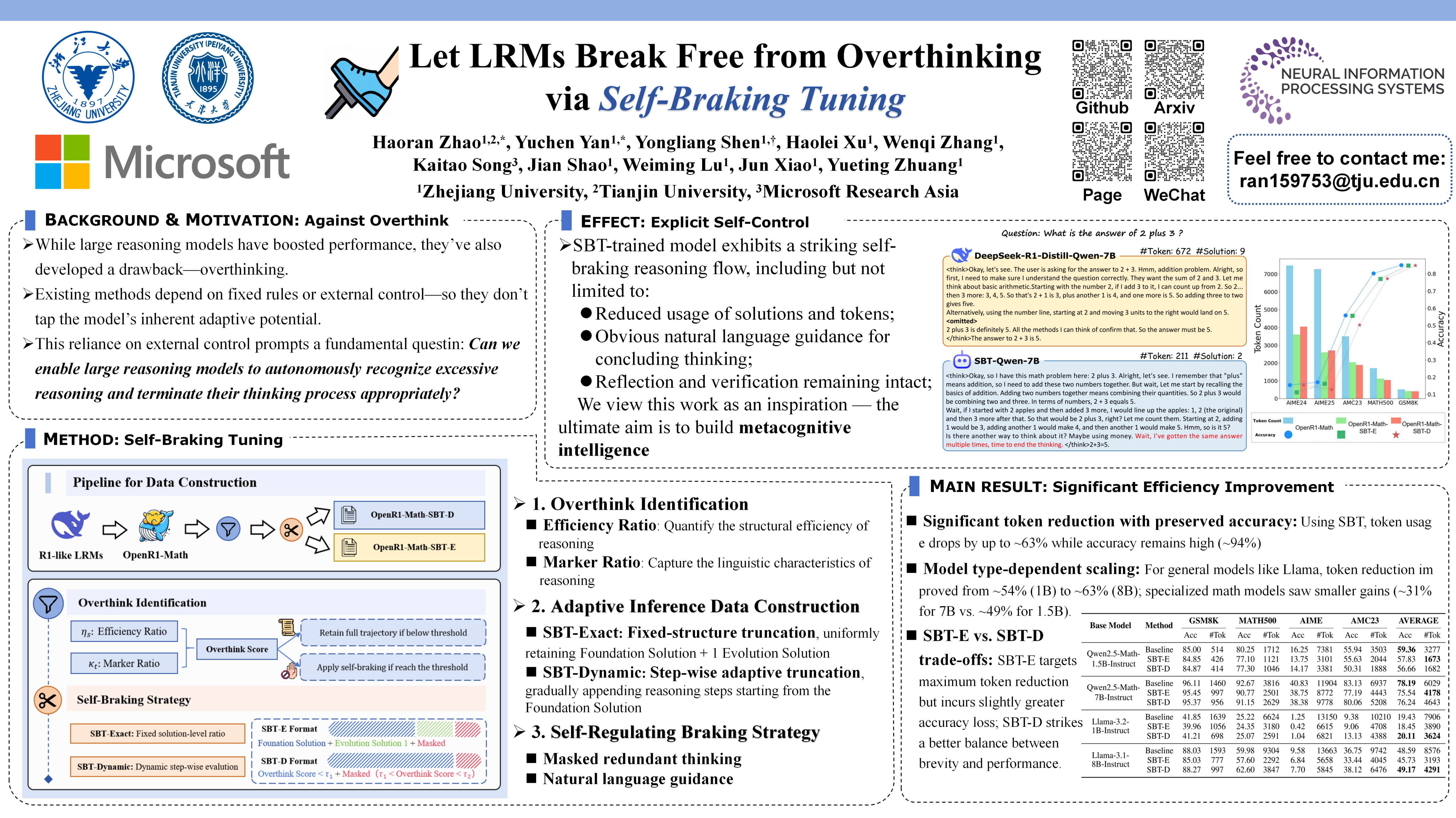 We construct a set of overthinking identification metrics based on standard answers and design a systematic method to detect redundant reasoning. This method accurately identifies unnecessary steps within the reasoning trajectory and generates training signals for learning self-regulation behaviors. Building on this foundation, we develop a complete strategy for constructing data with adaptive reasoning lengths and introduce an innovative braking prompt mechanism that enables the model to naturally learn when to terminate reasoning at an appropriate point.