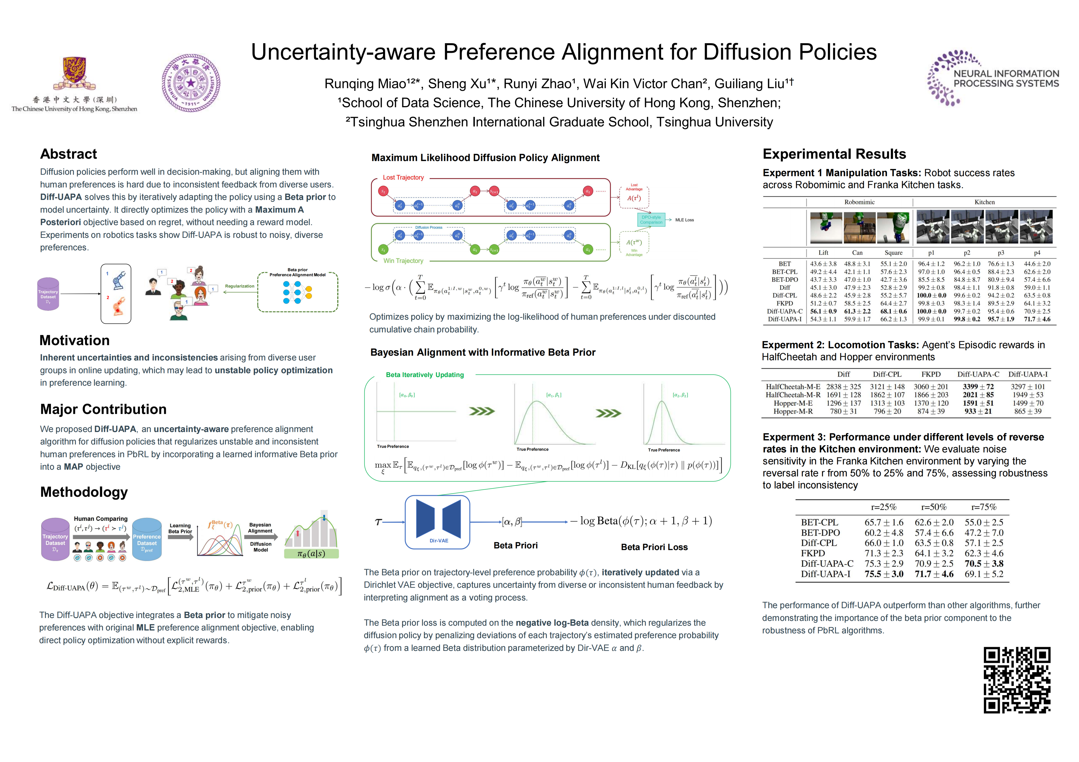 We conduct extensive experiments across both simulated and real-world robotics tasks, and diverse human preference configurations, demonstrating the robustness and reliability of Diff-UAPA in achieving effective preference alignment. The project page is available at https://anonymous.4open.science/w/Diff-UAPA-5827.