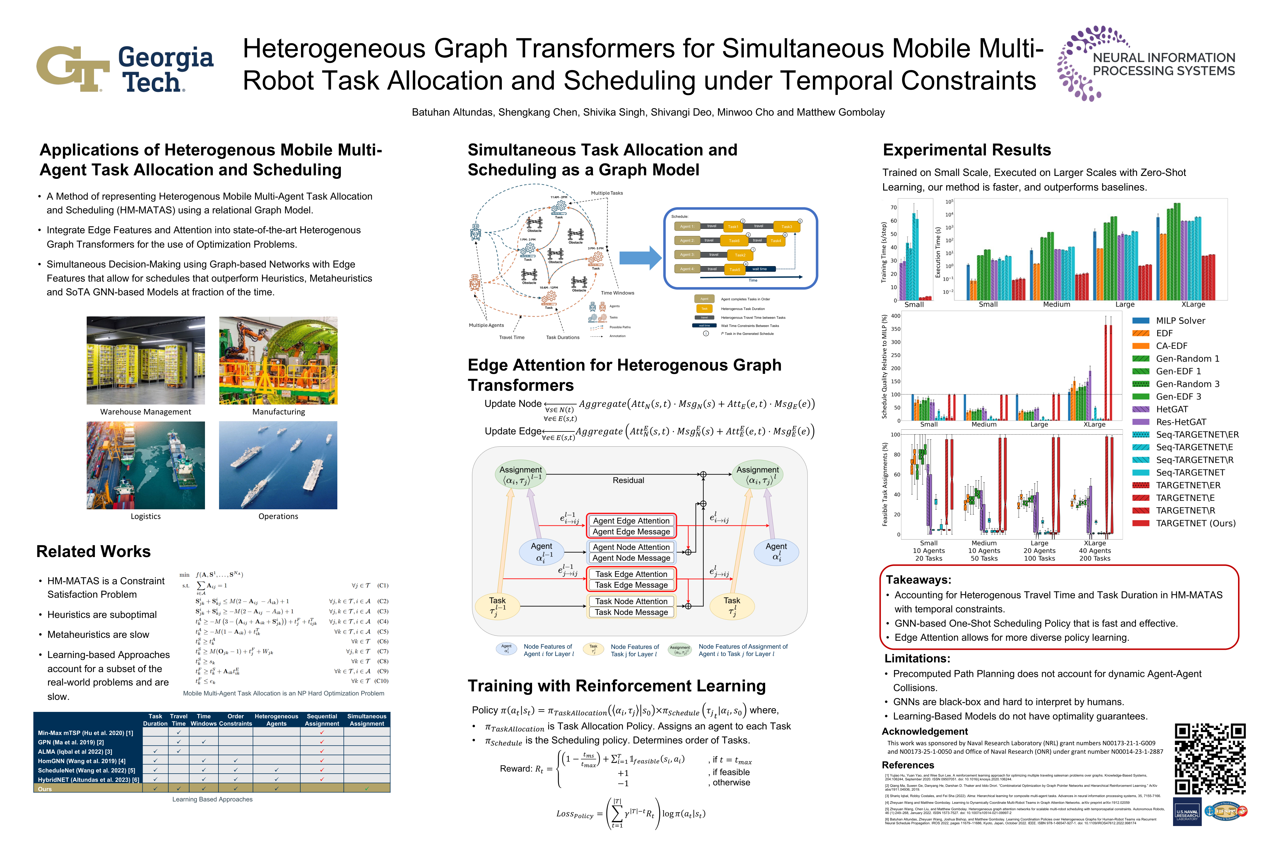 We propose a novel Simultaneous Decision-Making model for Heterogeneous Multi-Agent Task Allocation and Scheduling (HM-MATAS), built on a Residual Heterogeneous Graph Transformer with edge and node-level attention. Our model encodes agent capabilities, travel times, and temporospatial constraints into a rich graph representation and is trainable via reinforcement learning.