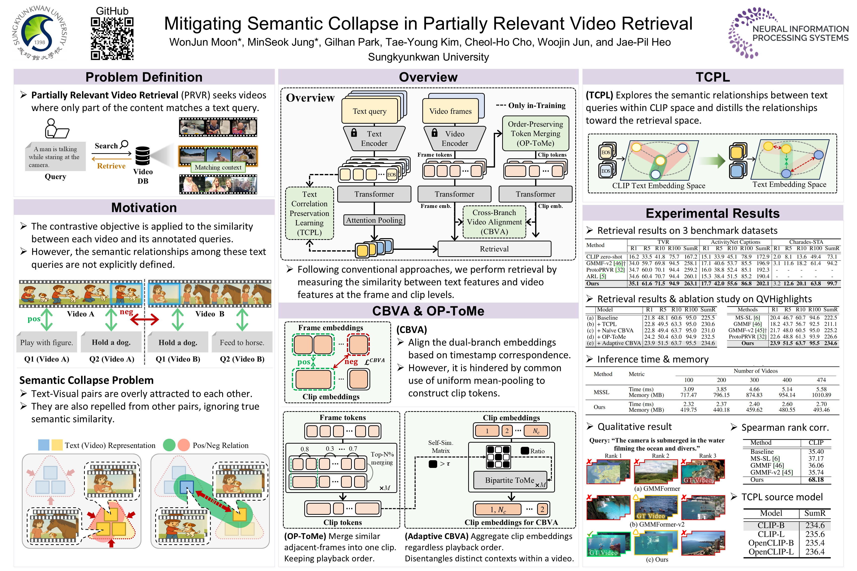 Partially Relevant Video Retrieval (PRVR) seeks videos where only part of the content matches a text query. Existing methods treat every annotated text–video pair as a positive and all others as negatives, ignoring the rich semantic variation both within a single video and across different videos. Consequently, embeddings of both queries and their corresponding video‐clip segments for distinct events within the same video collapse together, while embeddings of semantically similar queries and segments from different videos are driven apart. This limits retrieval performance when videos contain multiple, diverse events. This paper addresses the aforementioned problems, termed as semantic collapse, in both the text and video embedding spaces.