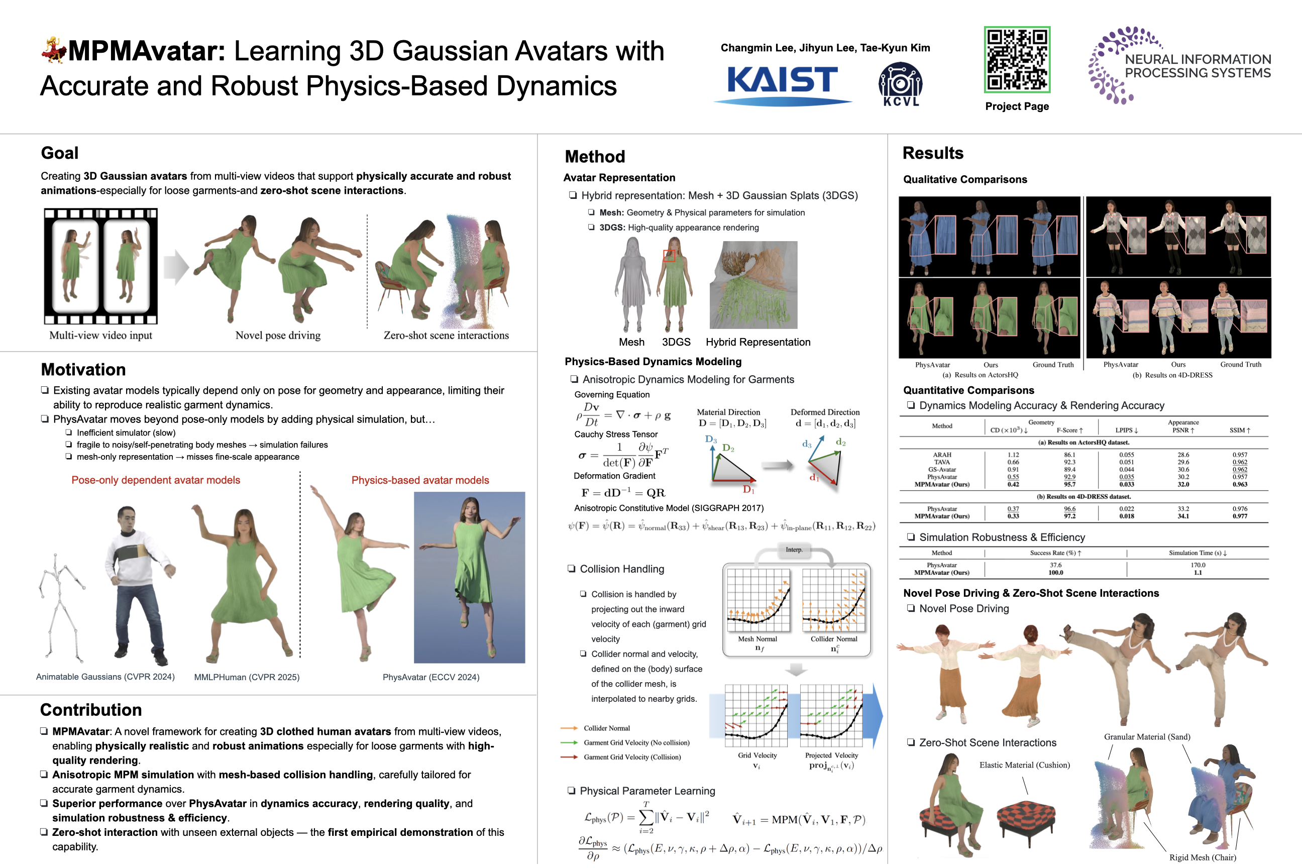 In our experiments, we demonstrate that MPMAvatar significantly outperforms the existing state-of-the-art physics-based avatar in terms of: