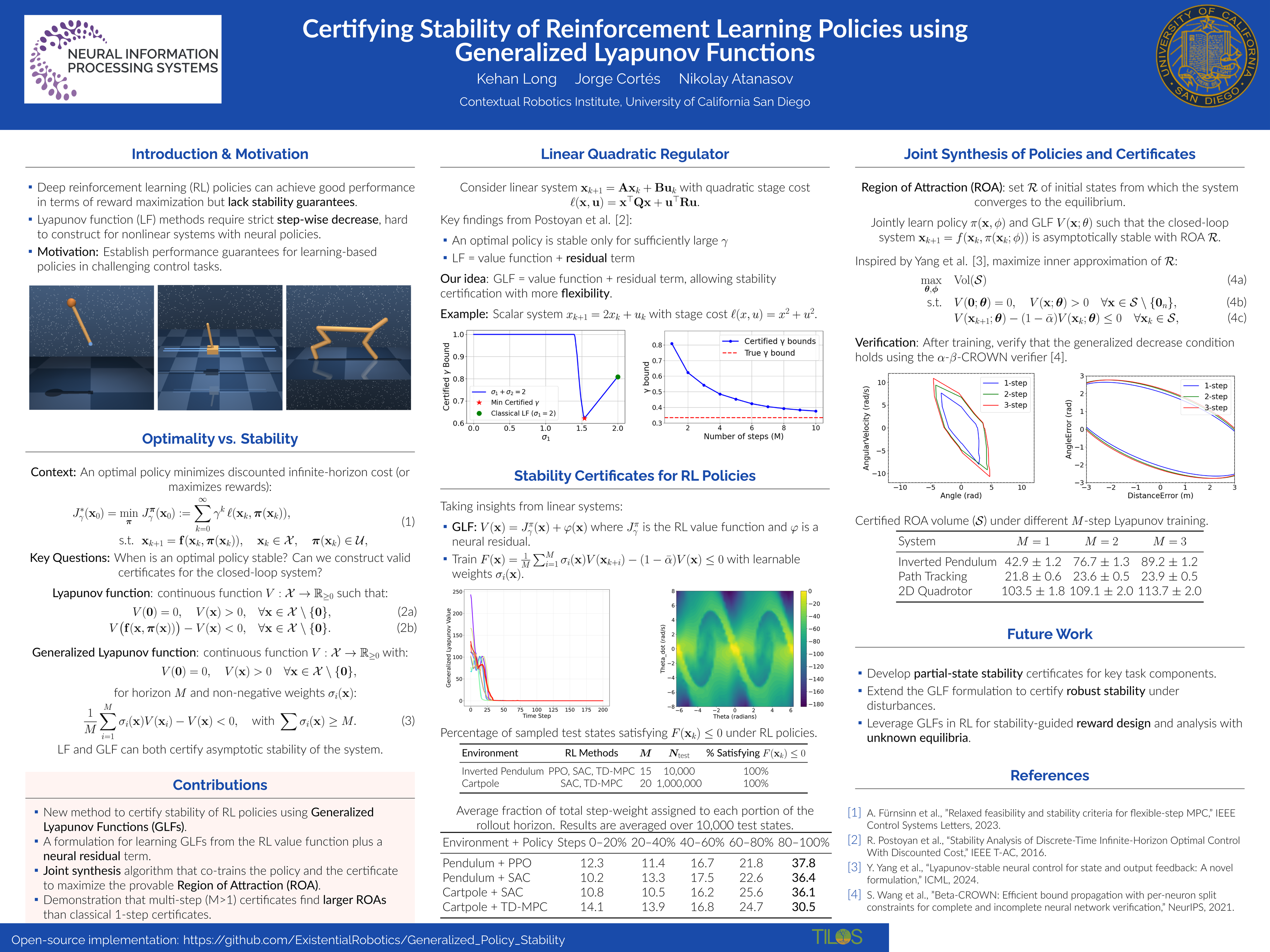 Overall, our formulation enables stability certification for a broad class of systems with learned policies by making certificates easier to construct, thereby bridging classical control theory and modern learning-based methods.