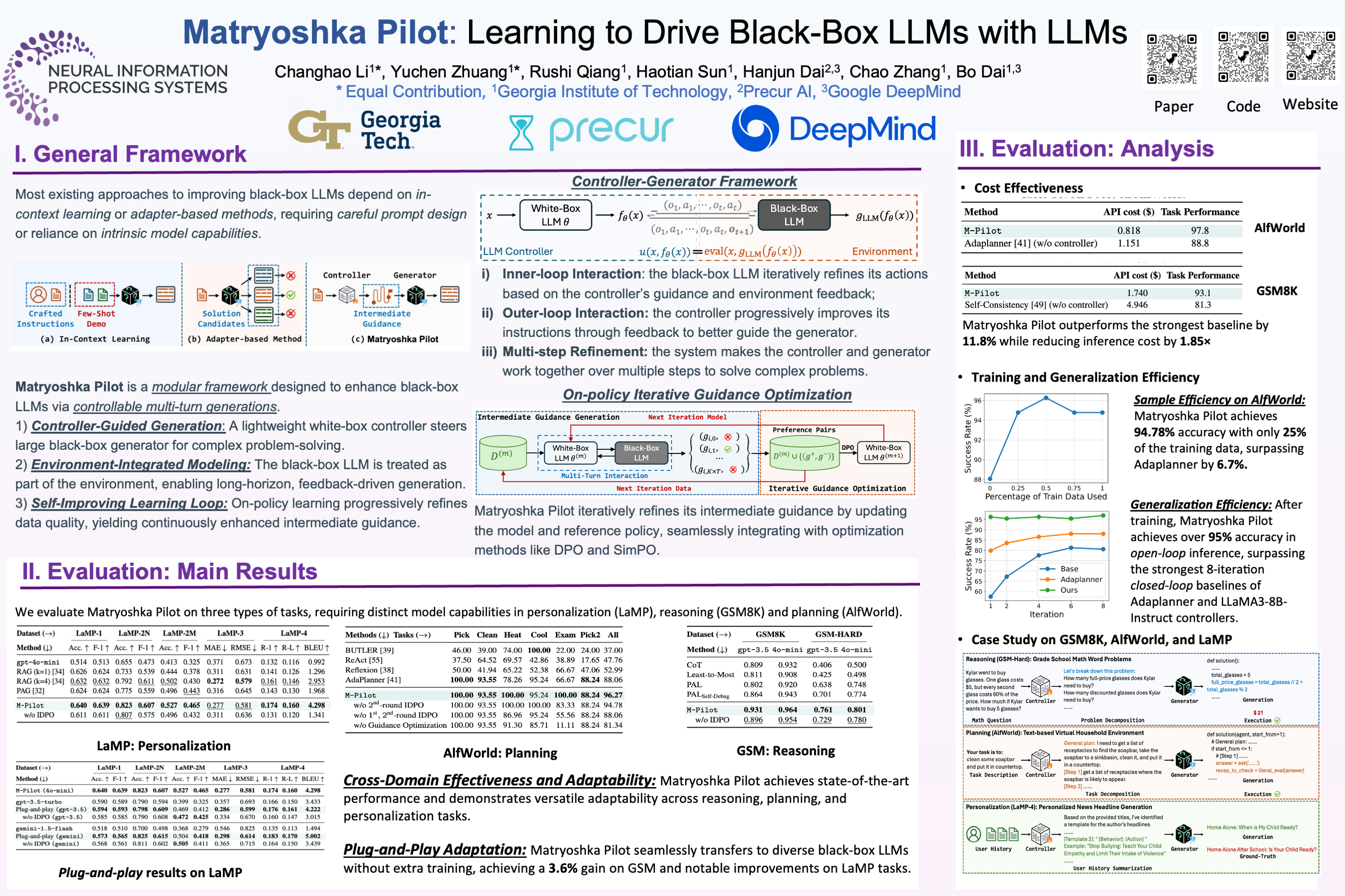 To address this challenge, we introduce Matryoshka Pilot (M-Pilot), a lightweight white-box LLM controller that guides a large-scale black-box LLM generator by decomposing complex tasks into a series of intermediate outputs.