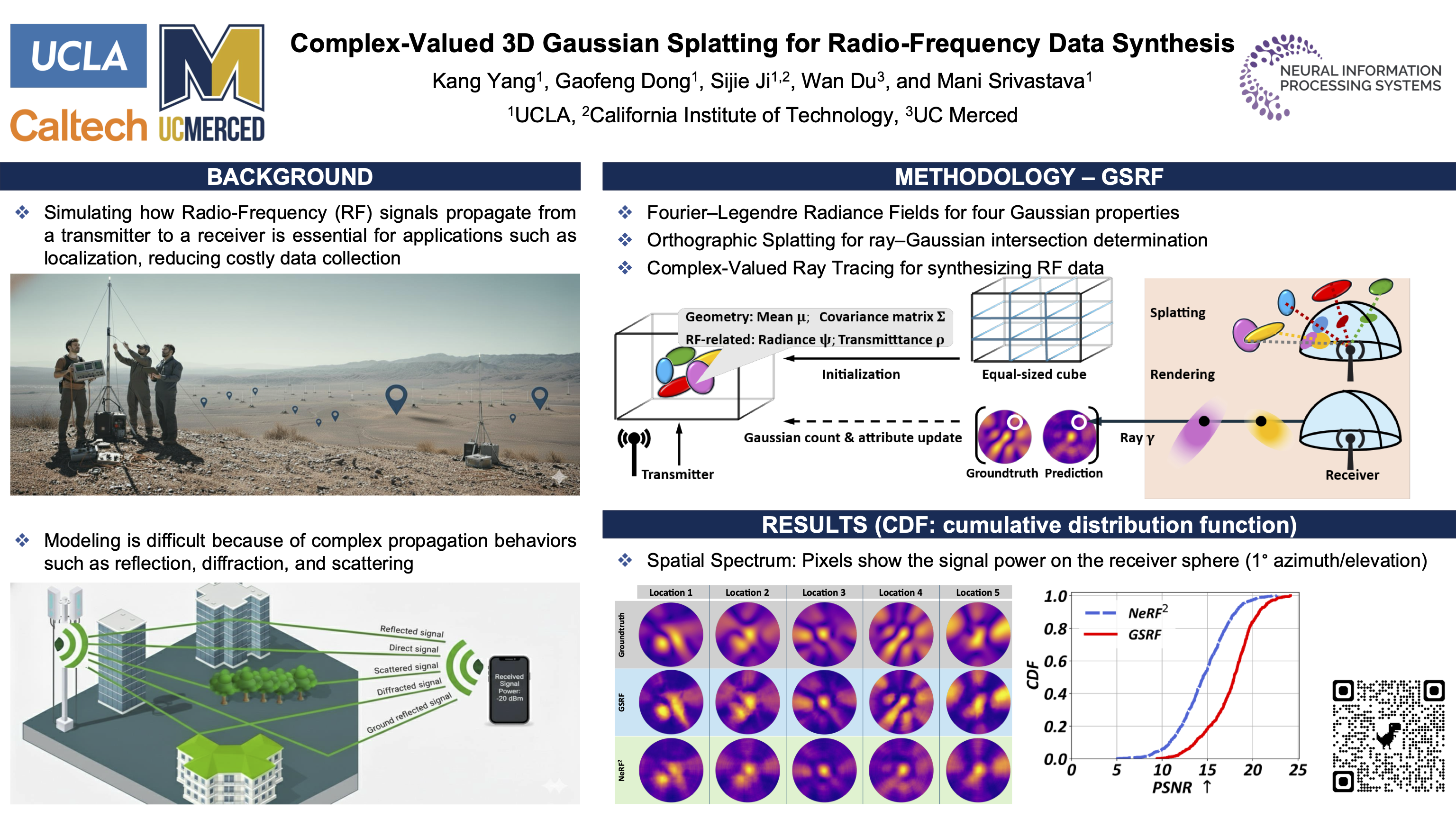 We introduce GSRF, a framework that extends 3D Gaussian Splatting (3DGS) from the optical domain to the RF domain, enabling efficient RF data synthesis.