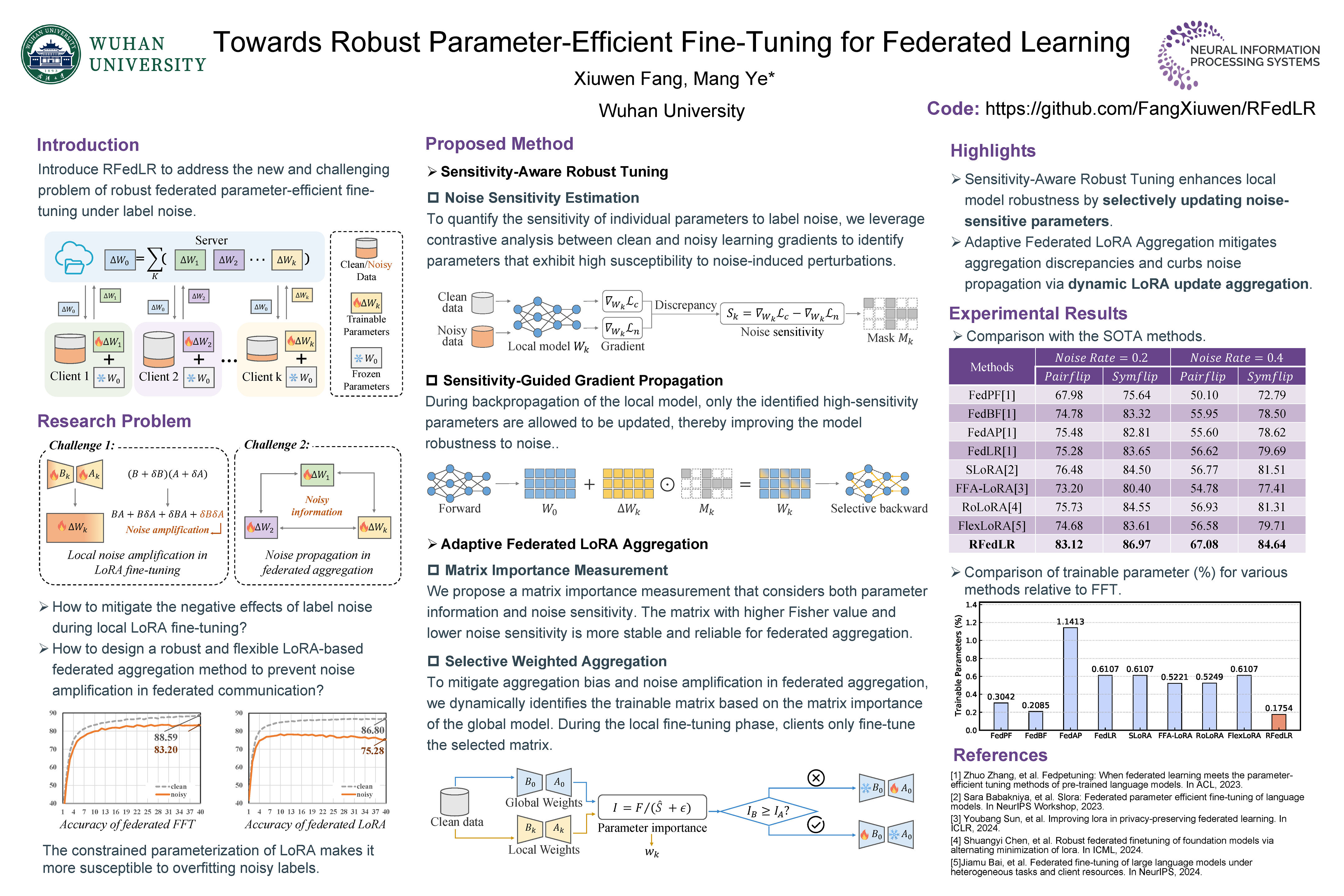 In this paper, we introduce RFedLR, a robust federated PEFT framework designed to overcome these challenges. RFedLR integrates two key components: