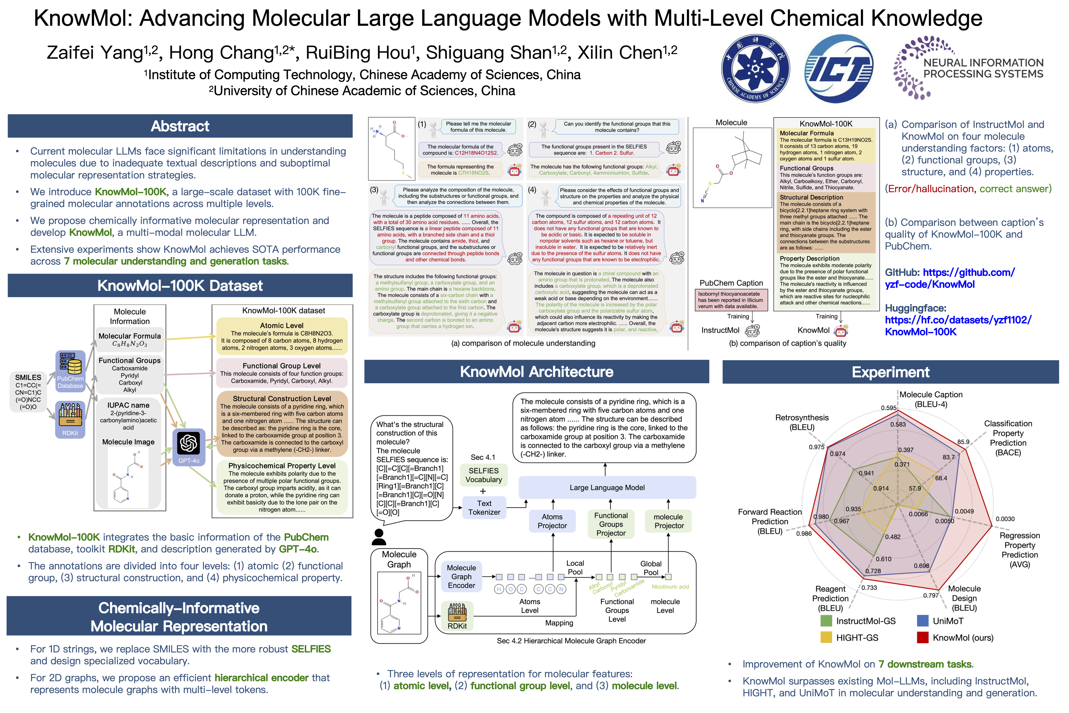 Building upon these innovations, we develop KnowMol, a state-of-the-art multi-modal molecular large language model. Extensive experiments demonstrate that KnowMol achieves superior performance across molecular understanding and generation tasks.